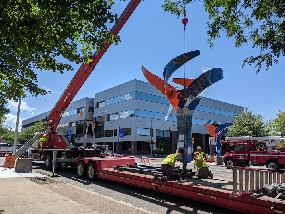 The Erie Downtown Partnership contracted with Wm. T. Spaeder Company to crane the sculptures into place.